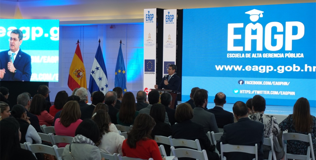 El pasado 5 de diciembre tuvo lugar en Honduras el lanzamiento oficial de la Escuela de Alta Gerencia Pública (EAGP) en Honduras, una iniciativa del Gobierno de Honduras con apoyo de la Unión Europea a través de la Agencia Española de Cooperación Internacional para el Desarrollo (AECID) con la que se pretende consolidar la Gestión por Resultados en este país. El lanzamiento tuvo lugar con la presencia del presidente de la República de Honduras, Juan Orlando, el Embajador de España en Honduras, Guillermo Kirkpatrick, así como representantes de la Unión Europea y de la Cooperación Española, entre otros.